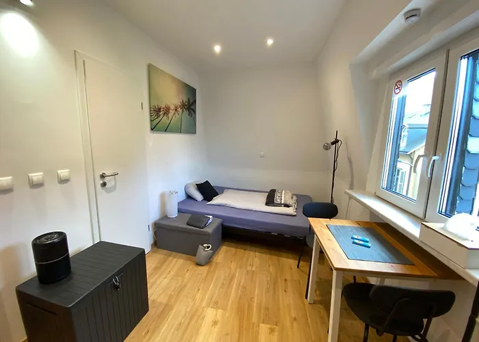 Zu den Extras gehören ein Wasserkocher, ein Kühlschrank und ein Toaster in einer kompletten Küche. Das Apartment bietet den Gästen auch Ausstattung zur Kaffee- & Teezubereitung. Das Restaurant Pizzeria la Piazza mit italienischen Gerichten lässt sich in 16 Gehminuten erreichen. Die Unterkunft ist in nur 300 Meter Entfernung von der nächstgelegenen Bushaltestelle Markenbildchenweg.